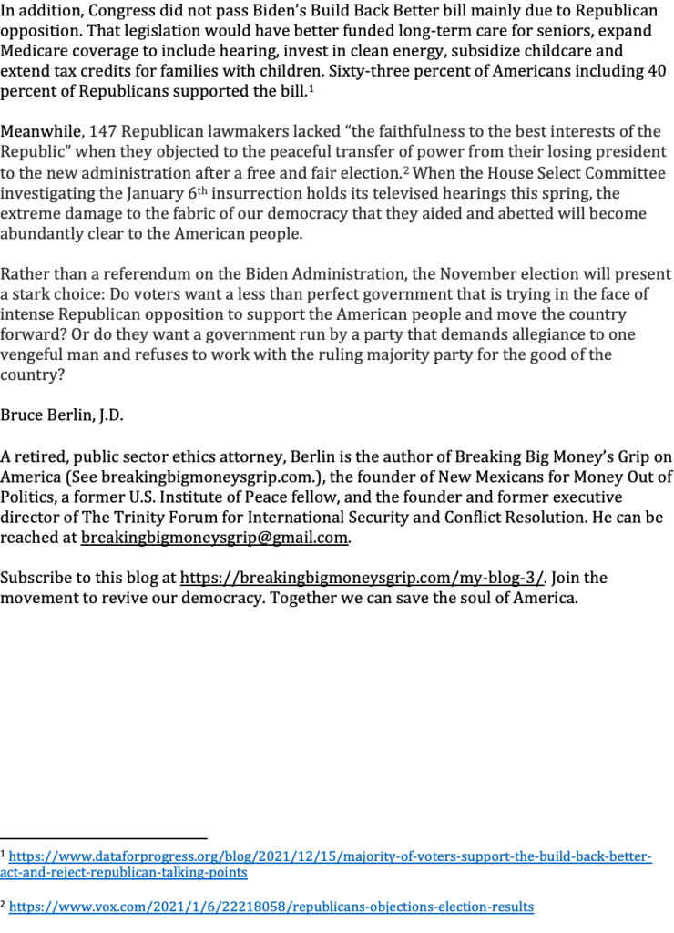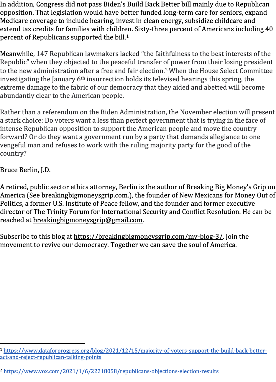Subscribe to this blog at https://breakingbigmoneysgrip.com/my-blog-3/. Join the movement to revive our democracy. Together we can save the soul of America.